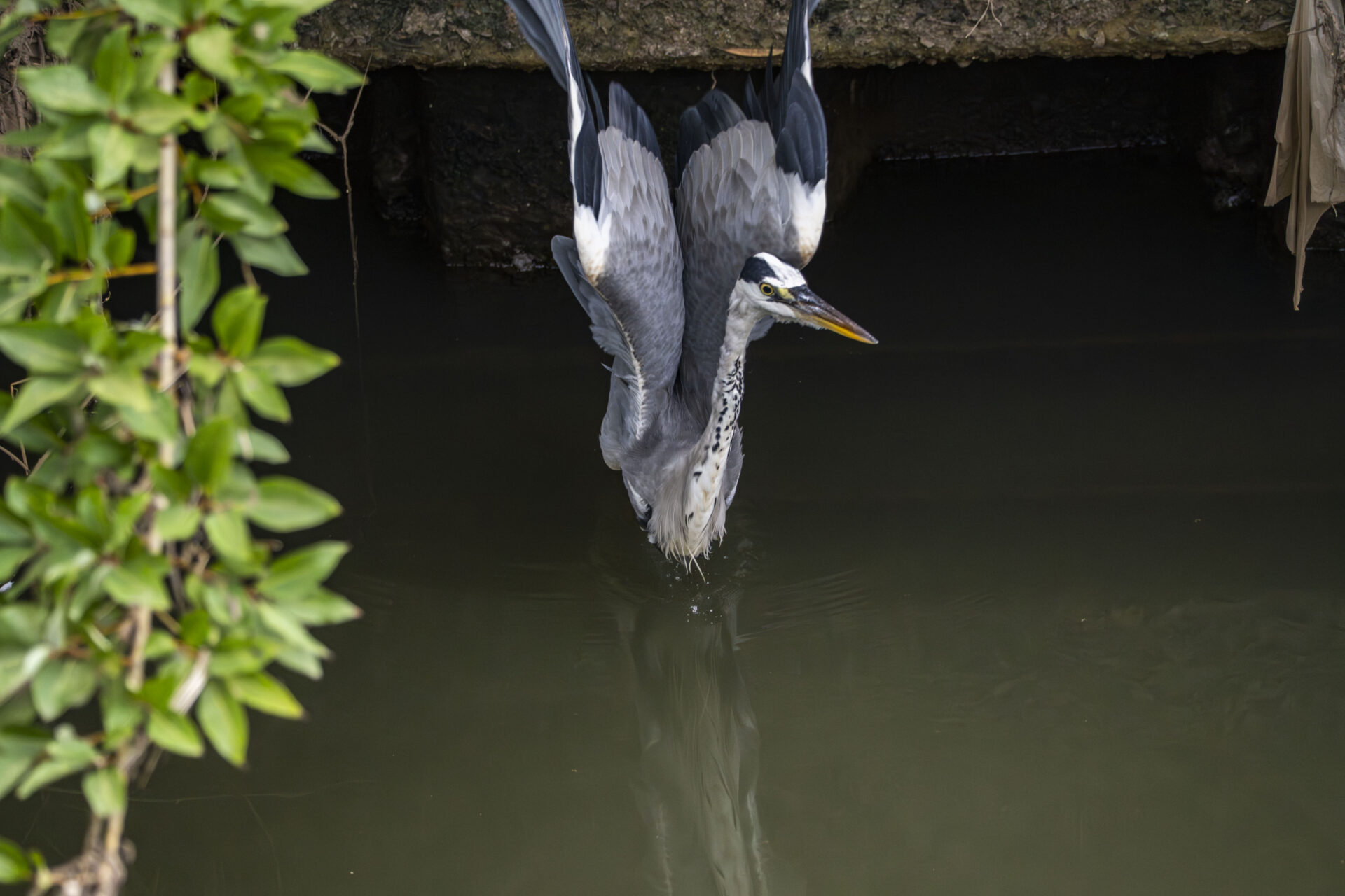 アオサギのおつまみ🦤がよくいた用水路ではちょくちょく別のアオサギが現れるようになった。生まれ変わり多くない?
