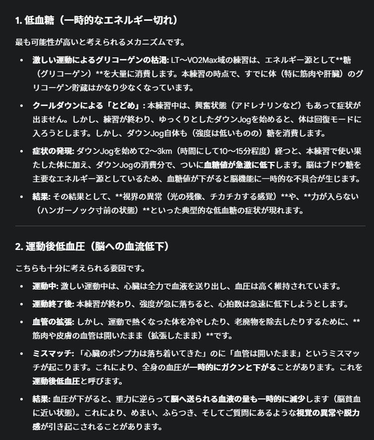 常に本練習の後のダウンJogとか、今日みたいな本練習後のプラスアルファ的な内容やってるときに起きる。