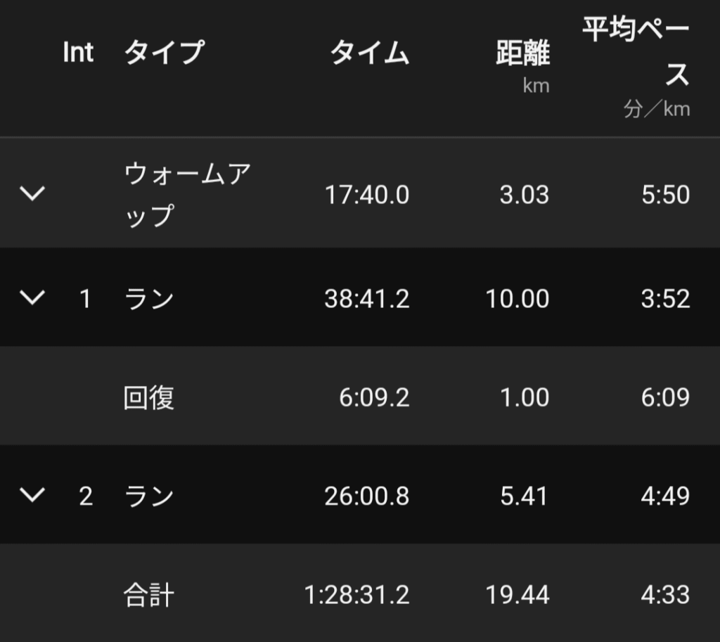 余裕を若干残しつつ10kmまで伸ばせた。ペースも3’52/kmなのでヨシ。