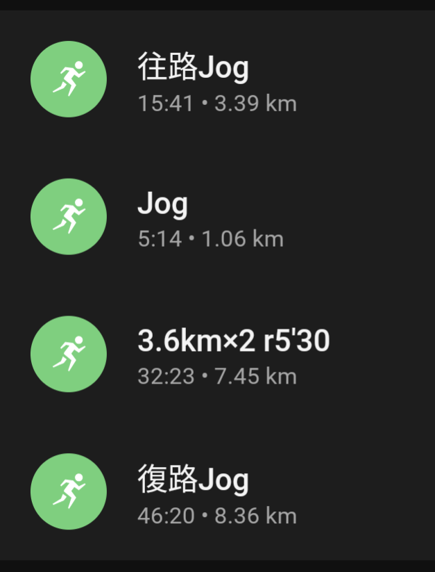 - 疲労を抜いてから次のレースに向けて再始動予定という感じでユルめに練習