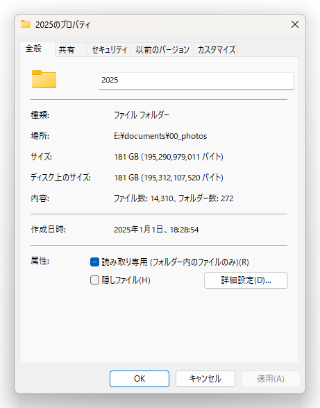 写真フォルダのサイズ見たら181GB。1TBあってもこれはあと3年もつかどうかというところか・・・