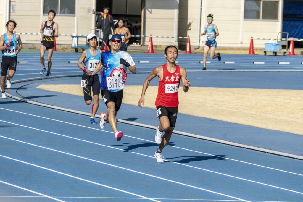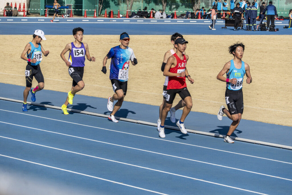 ずっと1人で先頭を走ってた選手とやや近づきながら、5人の2位集団でラスト1000mに突入。