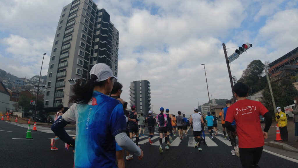 Aブロックの中盤に並んだけどスタートロス54秒。そのあとも道があまり広くなくて2~3kmまで渋滞してた。
