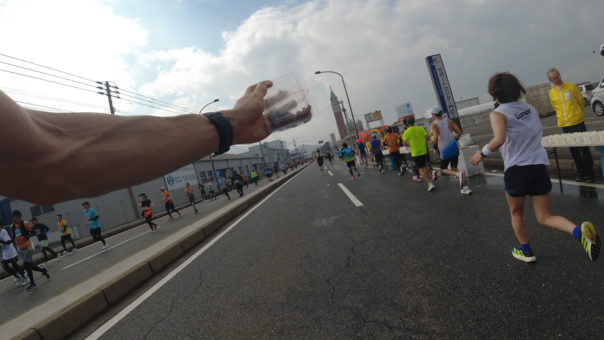20kmあたりから右脚の前モモが徐々にバキバキになってきてダメージを感じた。