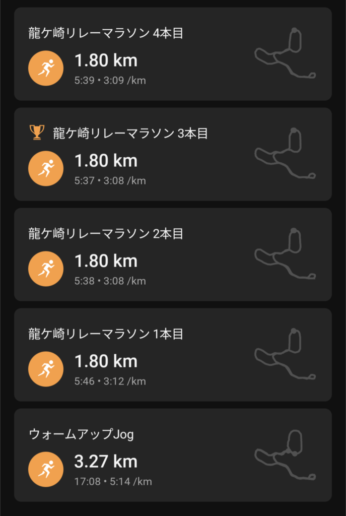 1本目こそ去年より速く、2本目も維持、3本目からギヤを上げていきたいところだったけど残ライフ的に3本目を上げると4本目が無理そうだったので3を捨てて4に賭ける。