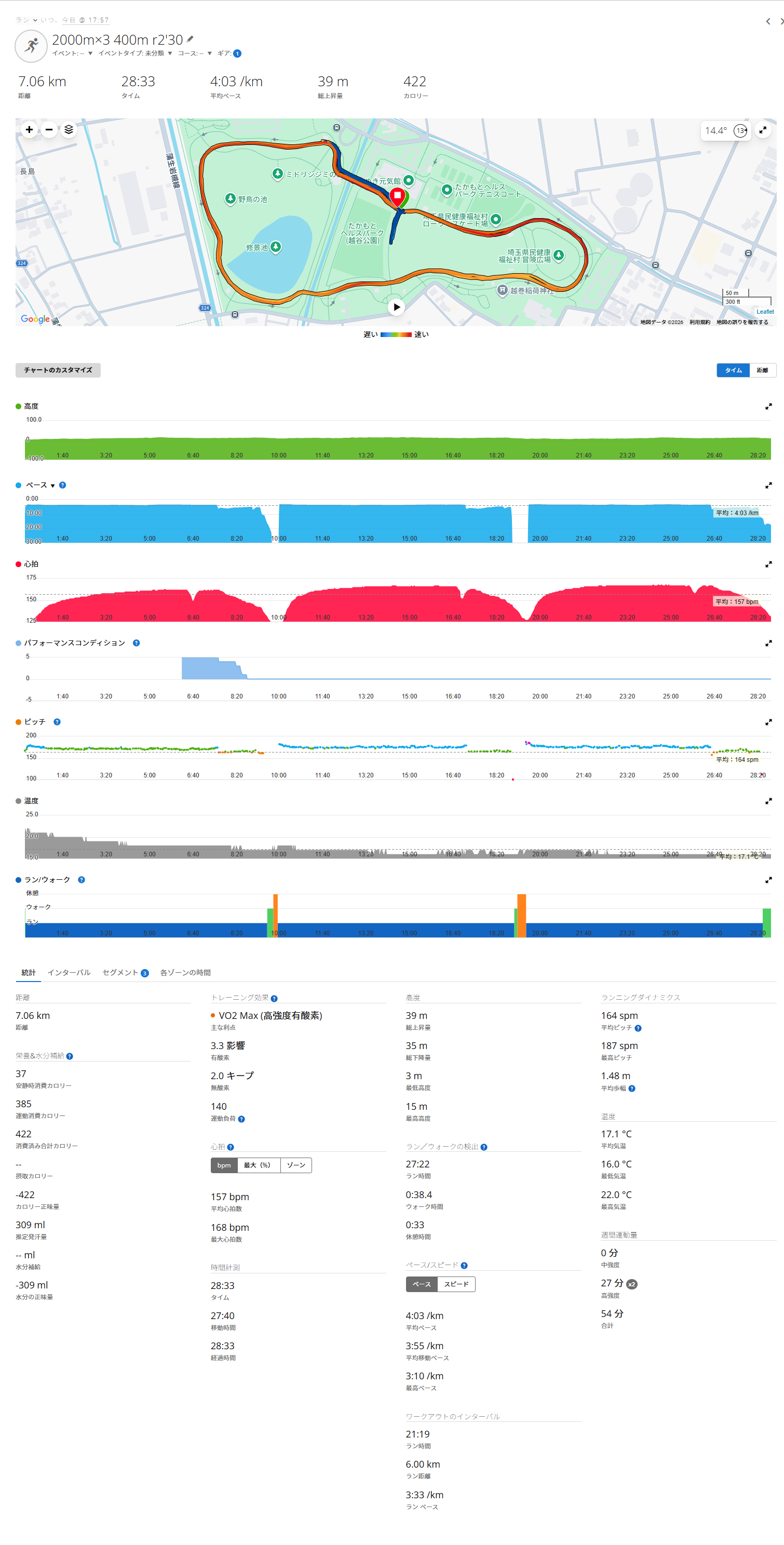 2000m×3も一昨年あたりだと3’25~3’20/kmでやれてたけど、レストが3’30で完全にVO2max狙いの練習なのと、やはり失敗(DNF)も多かった。