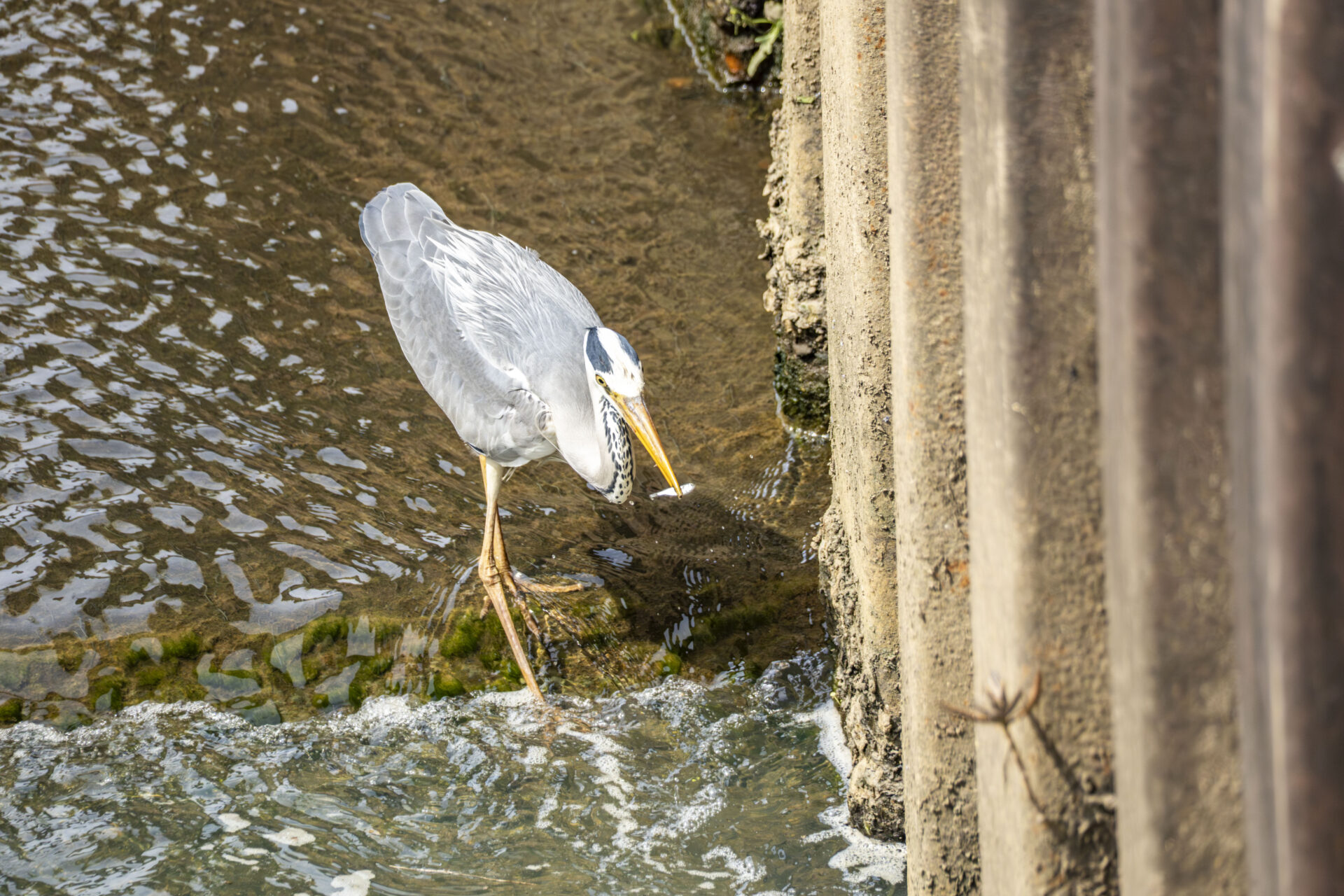 家のすぐそばの用水路、2~3週間ぐらいおきにしかアオサギが見られなくなってちょっと悲しみが続いていたが、今回また4/18ぶりに遭遇。