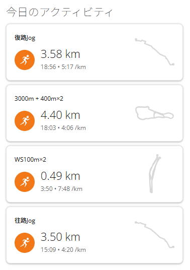今回は3000mに加えて5/4に控えた1500mレースを見据えて400m×2を足す。