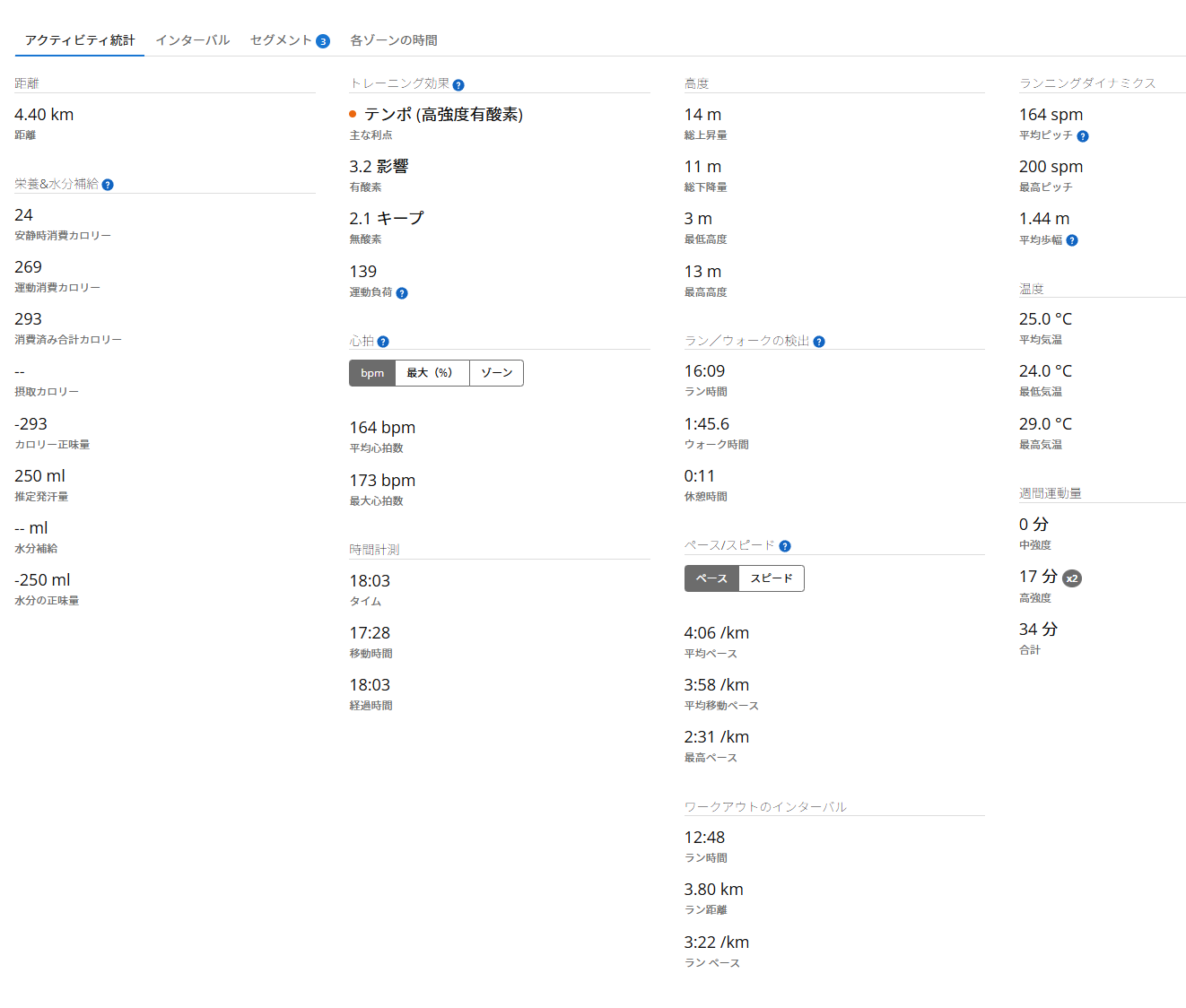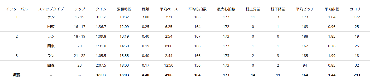 タイム的にはちょっとやりすぎたかもしれないが、膝に手をつくようなキツさではなく普通に歩くことはできるレベル。